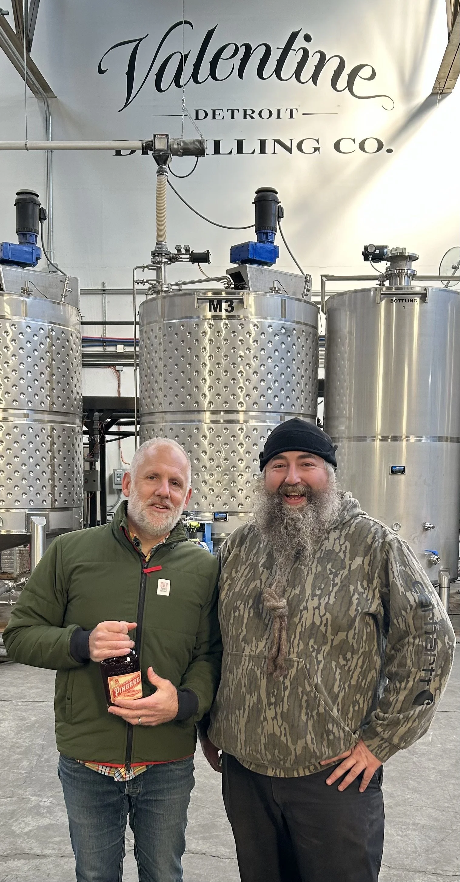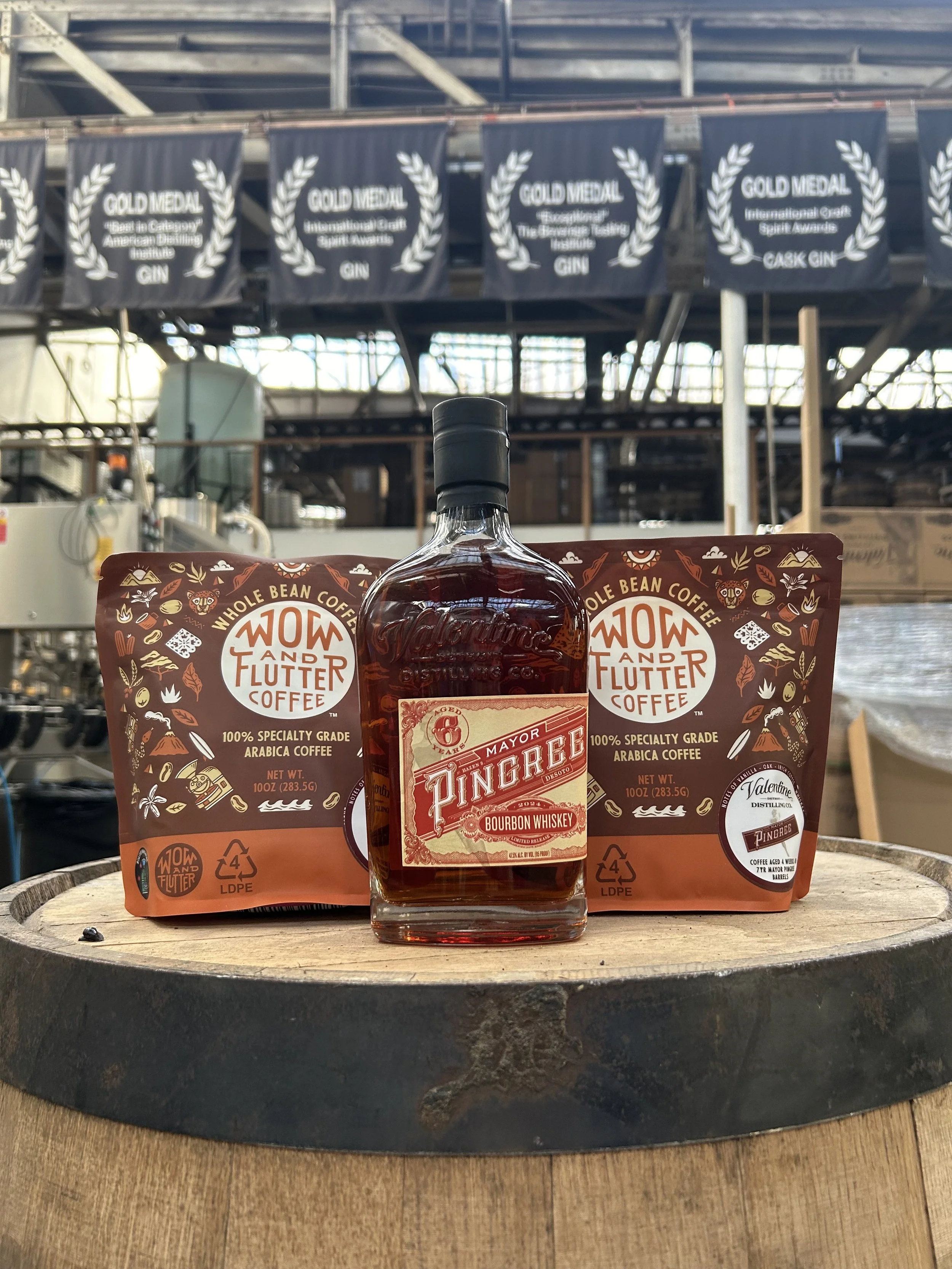This time it’s more of a “Large Facilities” Visit. We are very lucky to source oak barrels for our barrel aged coffee from a special distillery in Ferndale MI. Rafino Valentine started Valentine Distilling Co. in 2007 to produce craft spirits that would out-flavor mass-produced products and to show the U.S. quality manufacturing still exists in Detroit. Valentine is a consummate distiller who has proven, like select coffee roasters, brewers, vintners and electronics manufacturers (Shop Visit #1) small operations can be top tier producers and compete globally.